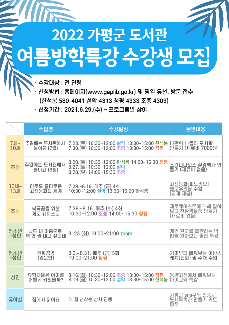 °¡Æò±º µµ¼­°ü ¿©¸§¹æÇÐÆ¯°­ ¾È³»